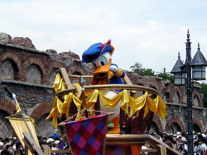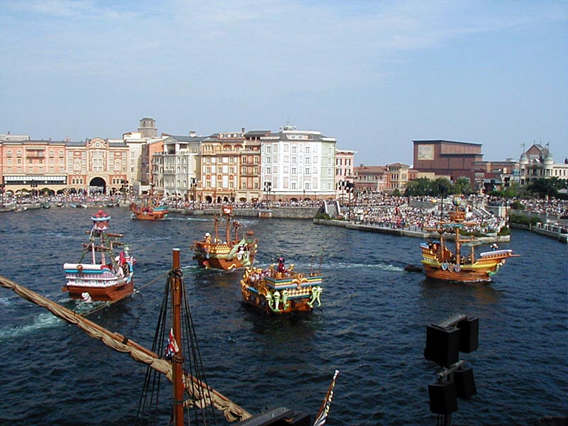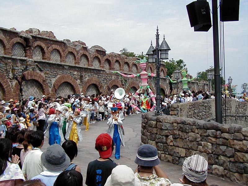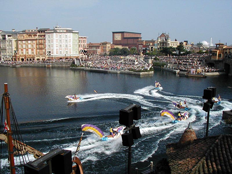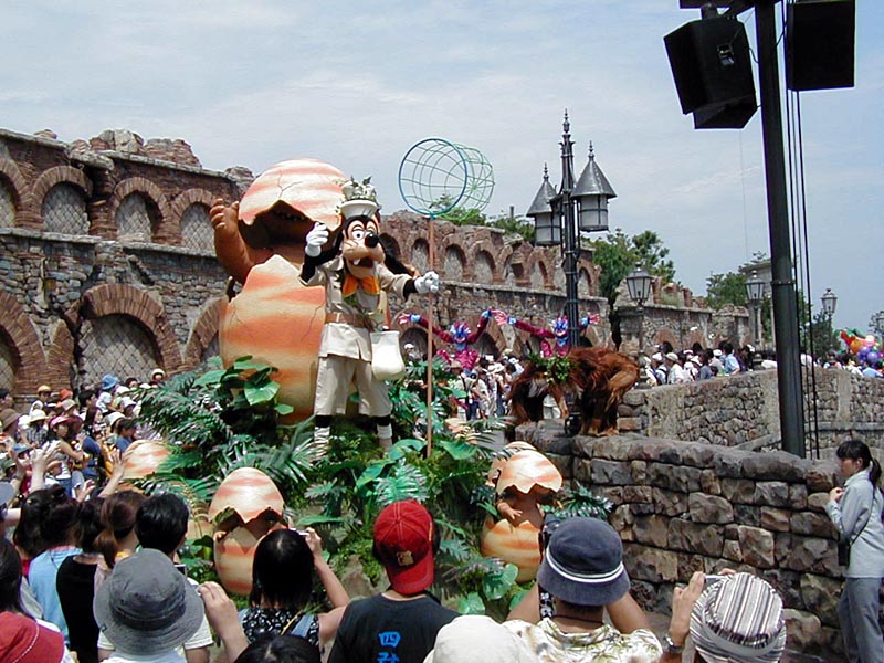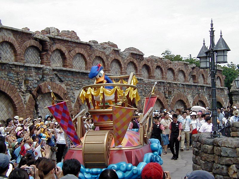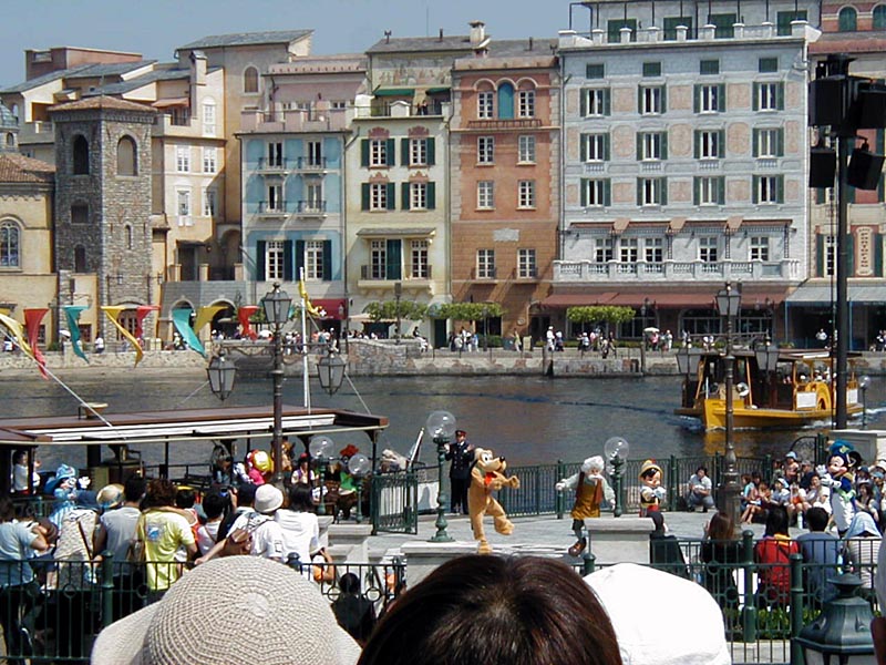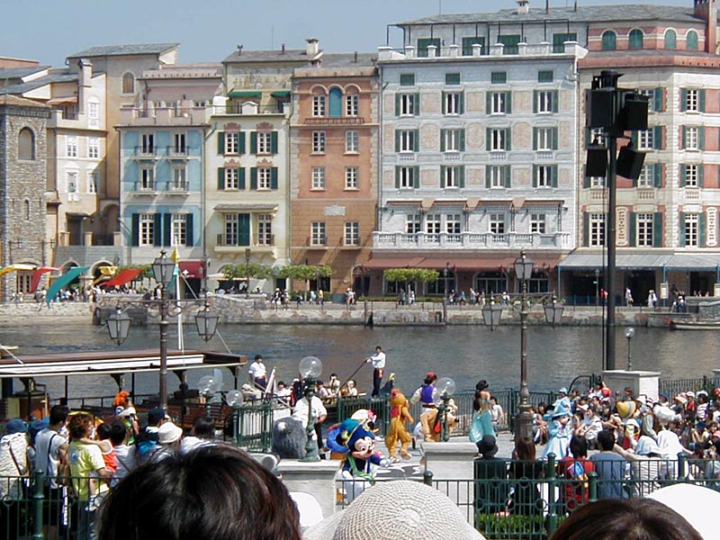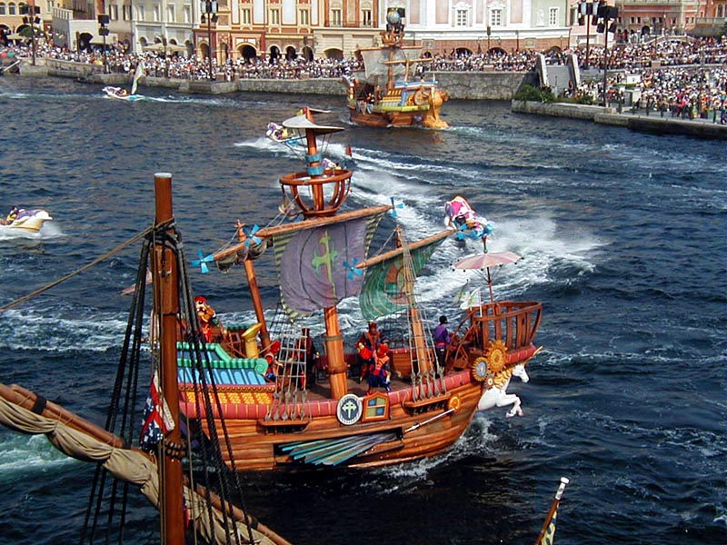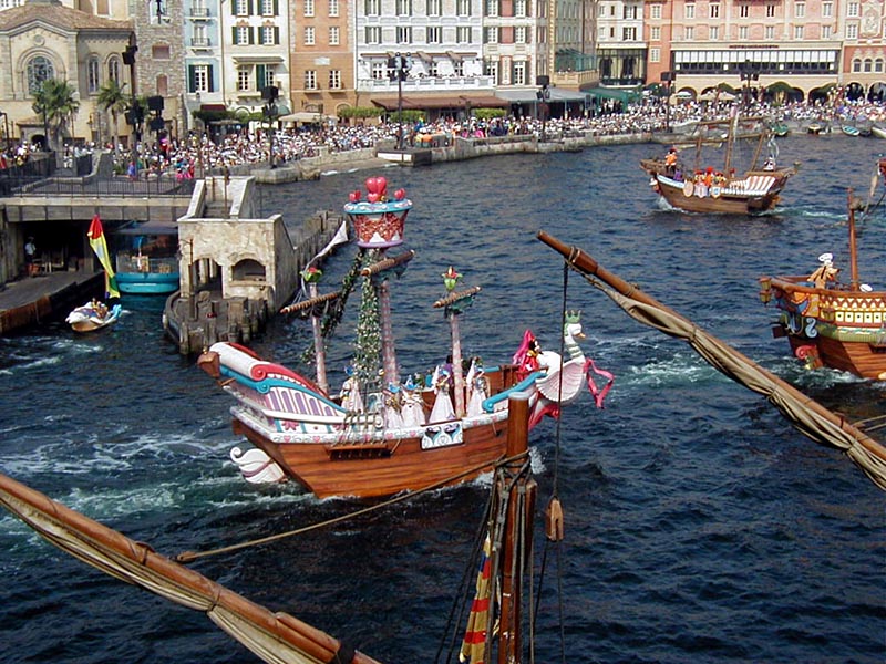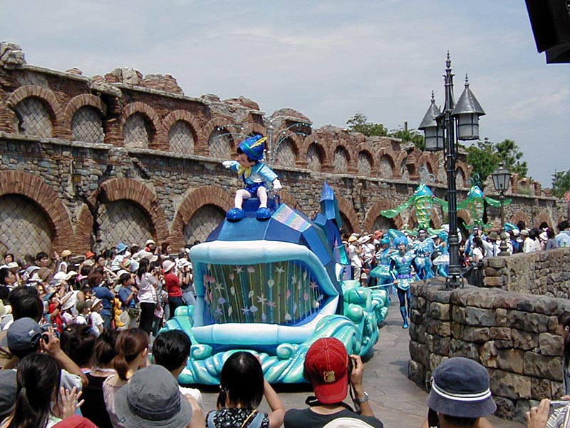 | 10時より「リドアイル・ミート&スマイル」を見ることに。おぉ!ミッキーとかが上陸して来た。 |