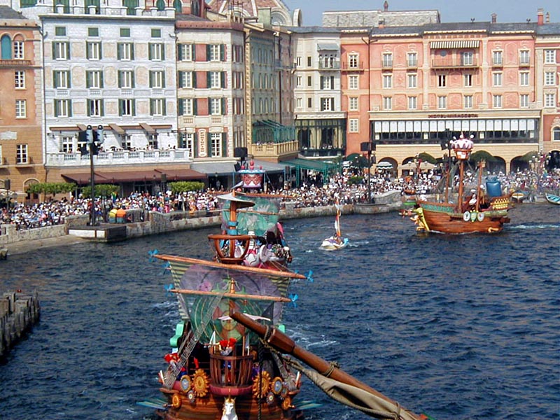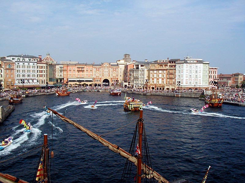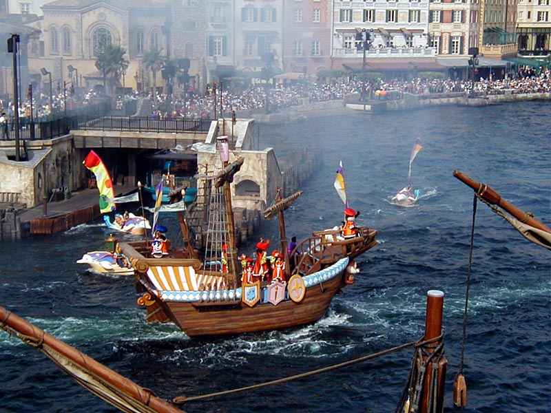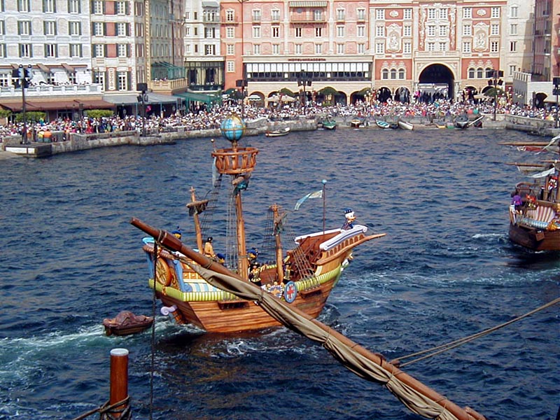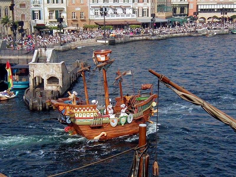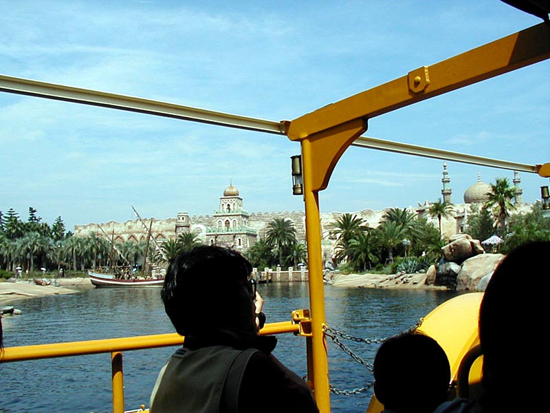 | まずは全体を軽く把握する為に、「ディズニーシー・トランジェットスチーマーライン」に乗り蒸気船で東京ディズニーシーを一周してみる。エリアによって、結構雰囲気が違って楽しそう♪ |