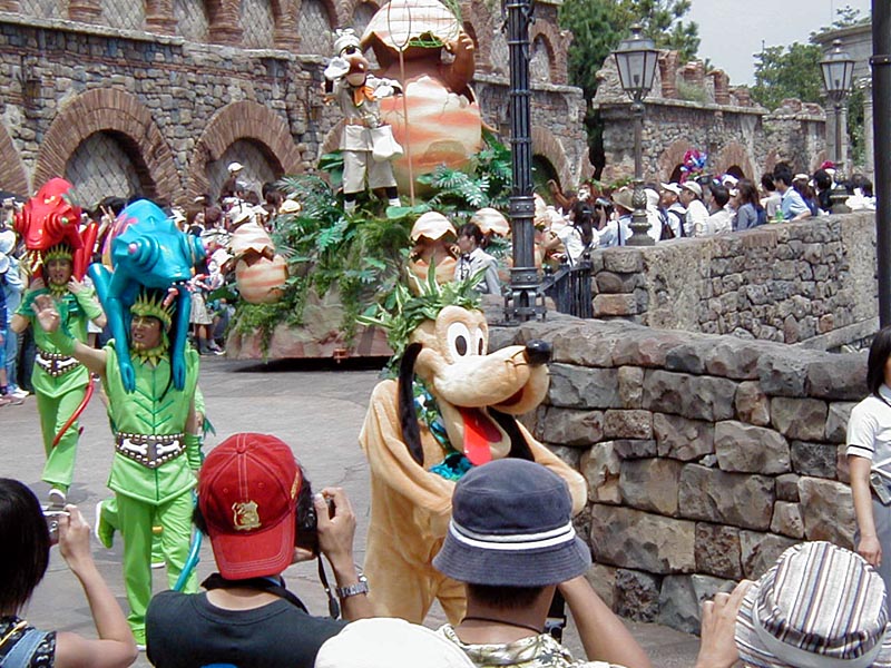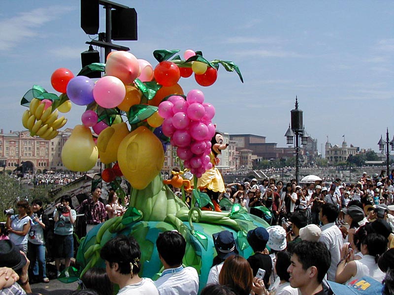 12時より、「ミッキーのファンタスティックキャラバン」で2周年のお祝いパレードを見る。