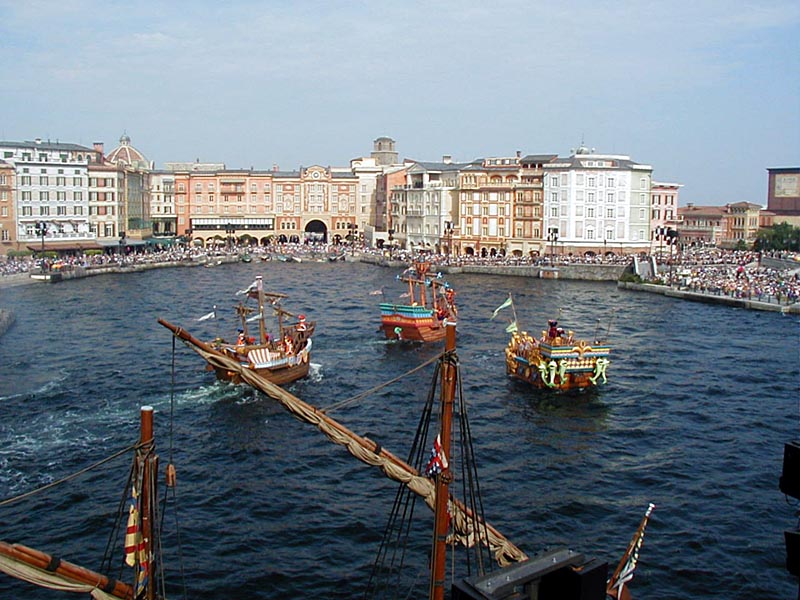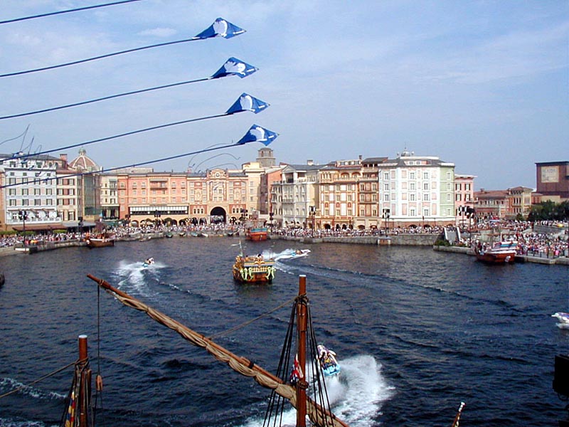 | 「フォートレス・エクスプロレーション」で場所を確保して、「ポルト・パラディーゾ・ウォータカーニバル」を見ることに。5隻の船が港を周回して、フィナーレではカイトが空を舞ってなかなか見応えありました。 |